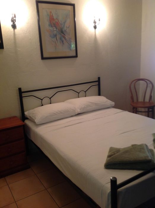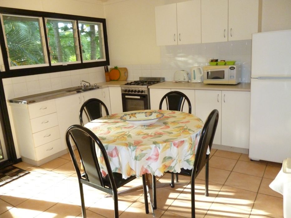 Unit 1 is upstairs and has two bedrooms. It is private, quiet and very, very comfortable. A double bed in one bedroom, two singles in the other, all are made up with linen and towels are provided. The lounge room is complete with comfortable seating for four people and a television. The kitchen has a large fridge and gas stove and it overlooks its own tropical garden and the swimming pool. Sitting on the verandah, you'd think you were living in the tree tops.